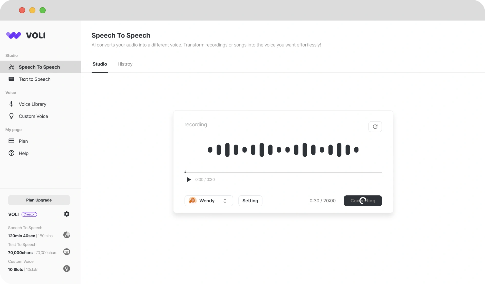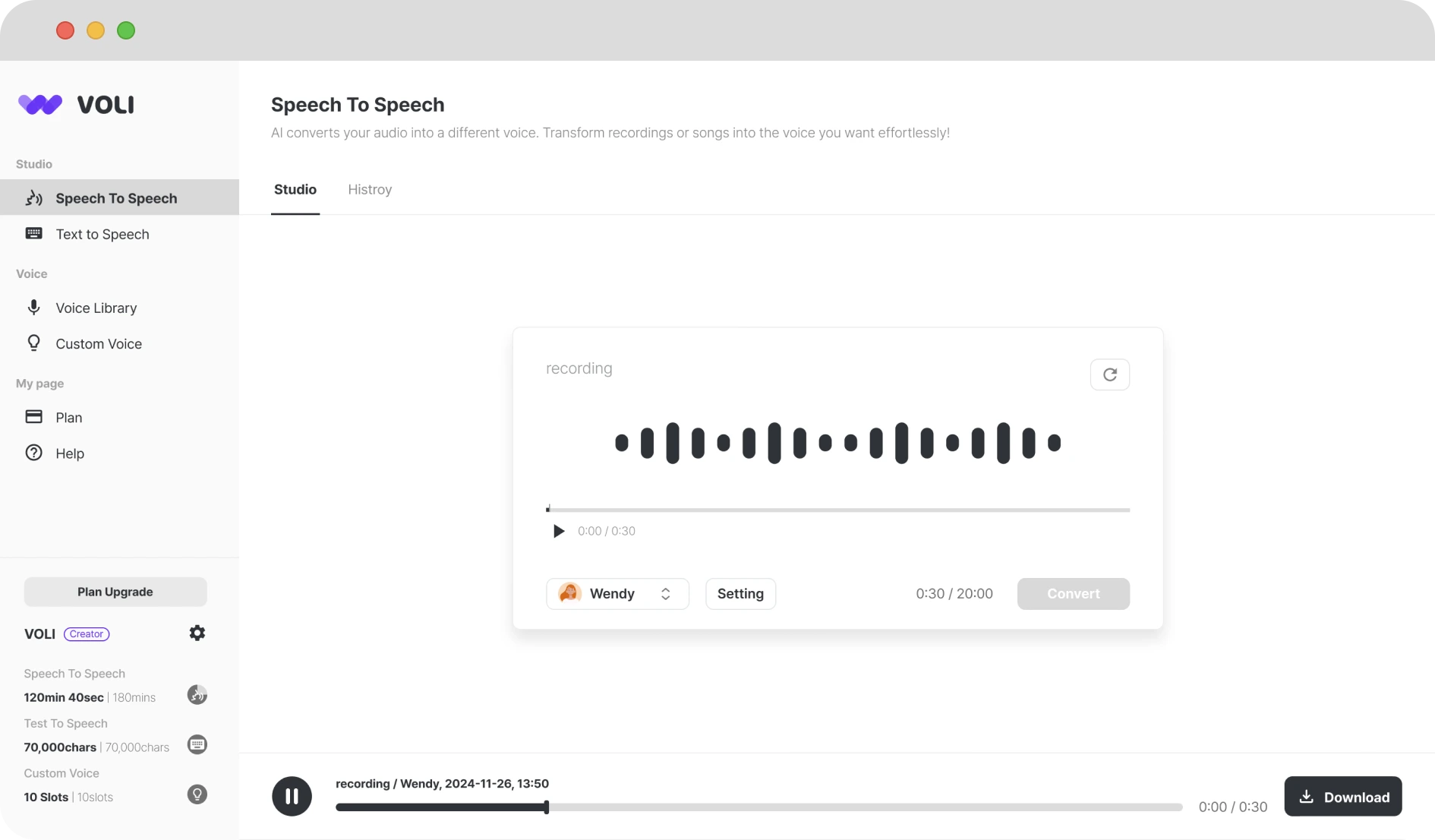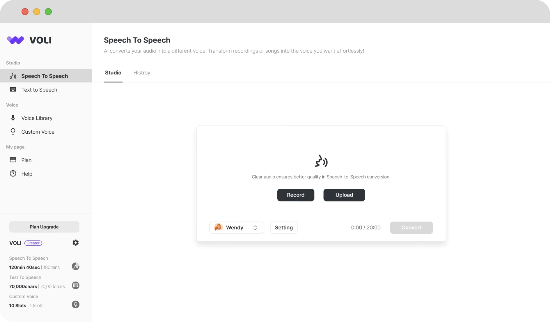 Please upload it as a clean voice file The less noise in the file, the better quality you can expect